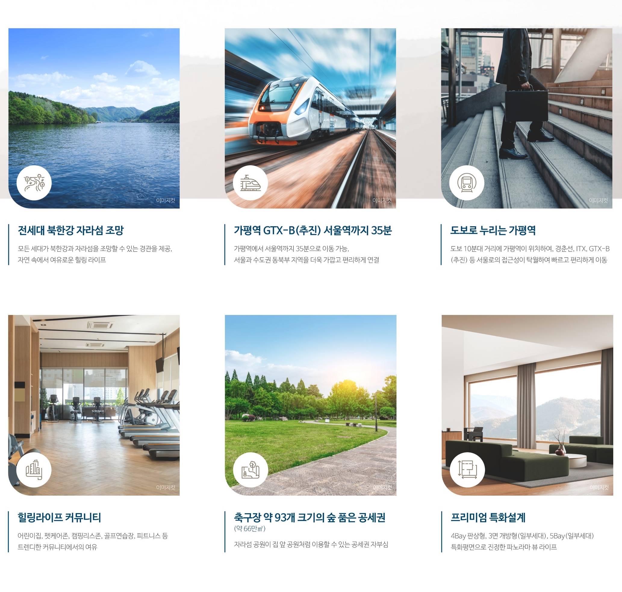 북한강을 품은 압도적 조망권 자라섬과 강변의 사계절을 앞마당처럼 누리는 일상 단지 바로 앞 북한강이 펼쳐지는 영구 조망을 확보하여 매일 아침 강변의 정취를 만끽하는 프리미엄 라이프를 제공합니다. 수자인 브랜드의 새로운 랜드마크 가평을 대표할 고품격 브랜드 대단지의 탄생 한양 수자인만의 건축 노하우와 감각적인 디자인이 결합되어 지역 내 주거 수준을 한 단계 높이는 상징적인 단지로 자리매김합니다. 서울이 더 가까워지는 쾌속 교통망 ITX 청춘 및 경춘선을 이용한 편리한 서울 접근성 가평역을 통해 서울 주요 도심까지 빠르게 이동할 수 있으며 출퇴근과 여가 생활을 모두 아우르는 광역 교통망을 갖췄습니다. 자연과 어우러진 특화 단지 설계 탁 트인 개방감과 실속 있는 평면 구성의 조화 강 조망을 극대화한 단지 배치와 넉넉한 수납공간을 통해 입주민의 주거 만족도를 높이는 혁신적인 공간 설계를 선보입니다. 사계절 축제의 장 자라섬 인프라 캠핑과 재즈 페스티벌을 도보로 즐기는 힐링 입지 대한민국 대표 관광지인 자라섬이 인접해 있어 언제든 문화와 휴양을 일상에서 경험하는 특별한 혜택을 누립니다. 여유로운 주거를 완성하는 커뮤니티 입주민 전용 편의 시설과 다채로운 휴게 공간 다양한 커뮤니티 시설과 단지 내 조경 공간을 마련하여 이웃과 소통하며 건강한 삶을 영위할 수 있는 최적의 환경을 조성합니다.
